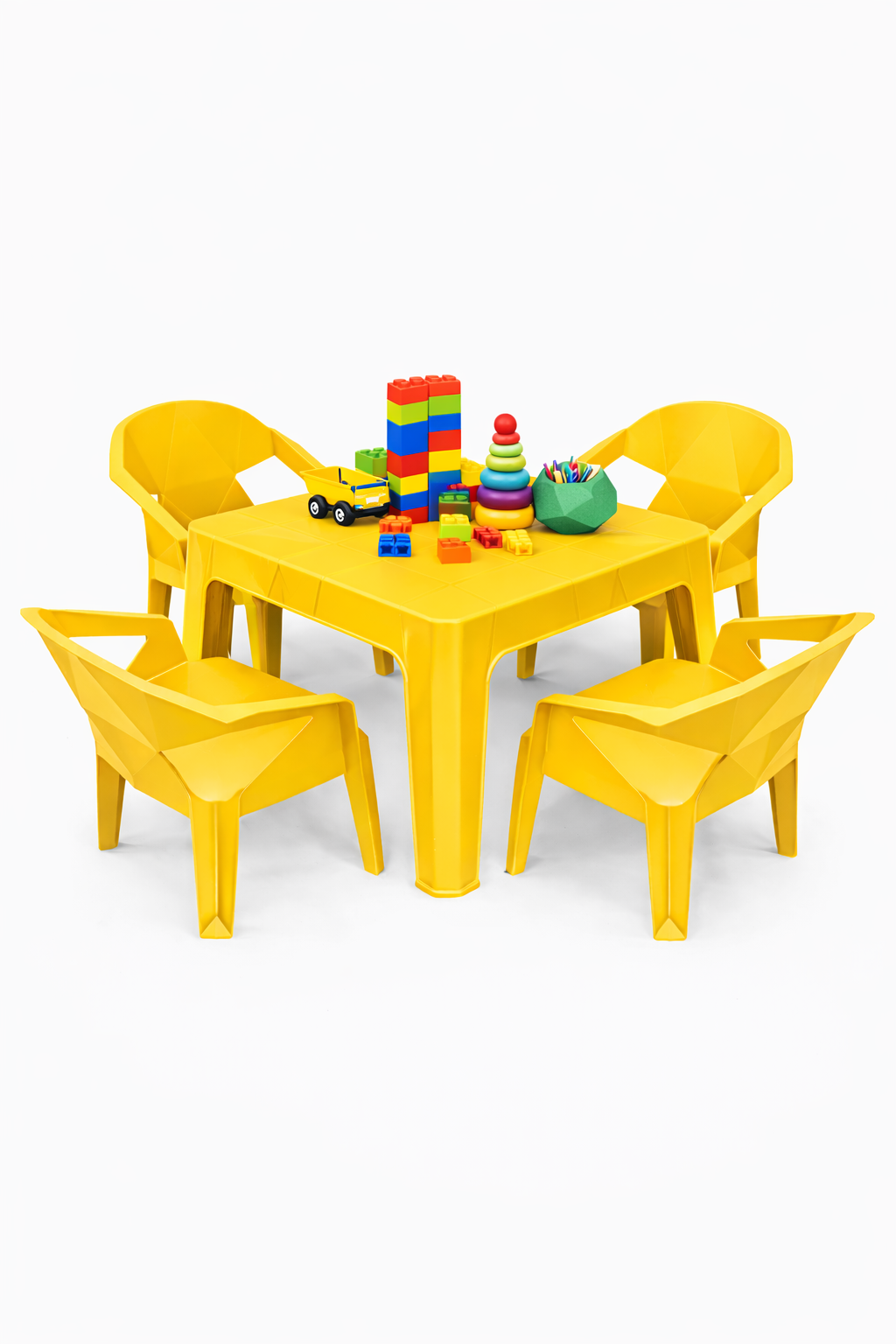 O Conjunto Infantil de Mesa e Poltronas Diamante de Plástico é ideal para ambientes como escolas, igrejas, festas, áreas recreativas e uso doméstico. Produzido em plástico de alta qualidade, oferece segurança, durabilidade e conforto para crianças, com fácil limpeza e excelente estabilidade.