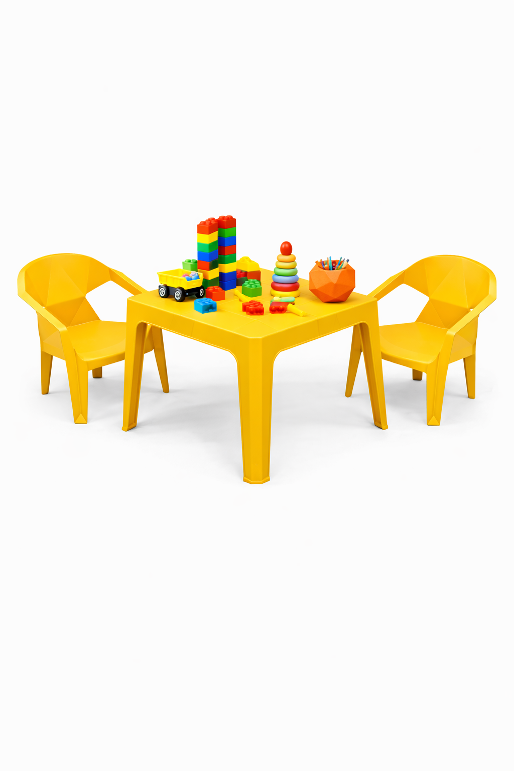 O Conjunto Infantil de Mesa e Poltronas Diamante de Plástico é ideal para ambientes como escolas, igrejas, festas, áreas recreativas e uso doméstico. Produzido em plástico de alta qualidade, oferece segurança, durabilidade e conforto para crianças, com fácil limpeza e excelente estabilidade.